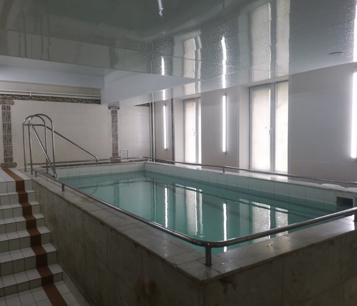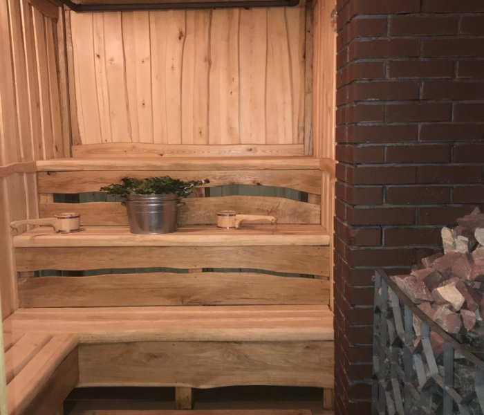 Баня на дровах с мини-бассейном купелью